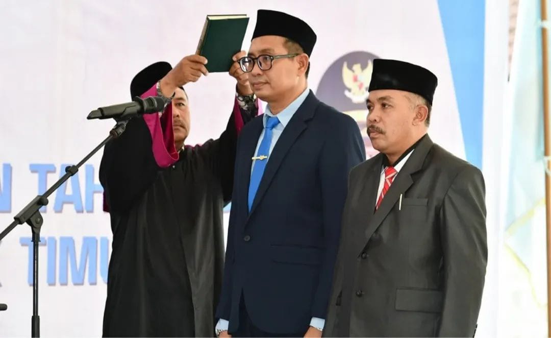 Sekretaris Daerah Lombok Timur, M Juaini Taofik, memimpin langsung pengambilan sumpah jabatan kedua pejabat tersebut.