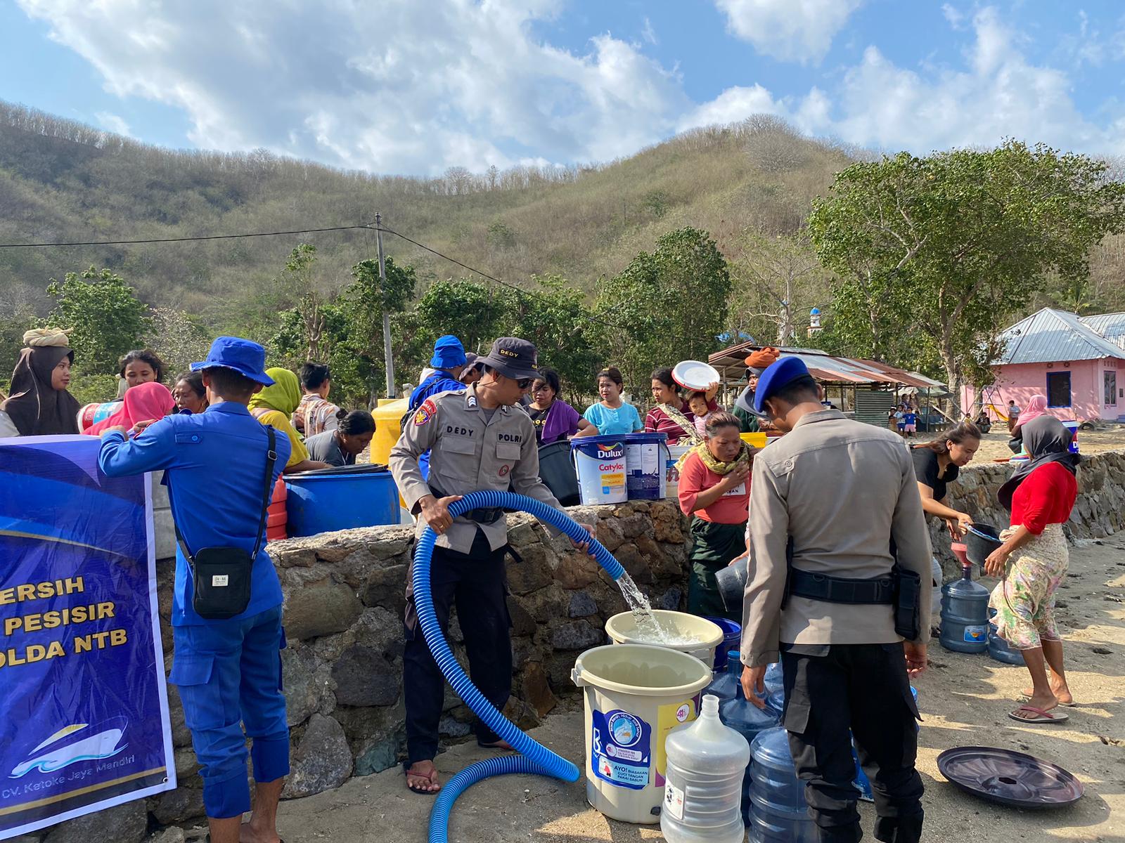 Kabid Humas Polda NTB, AKBP Mohammad Kholid, S.I.K., menjelaskan penyaluran air bersih ini sebagai langkah nyata Polairud dalam membantu masyarakat yang terdampak bencana kekeringan.
