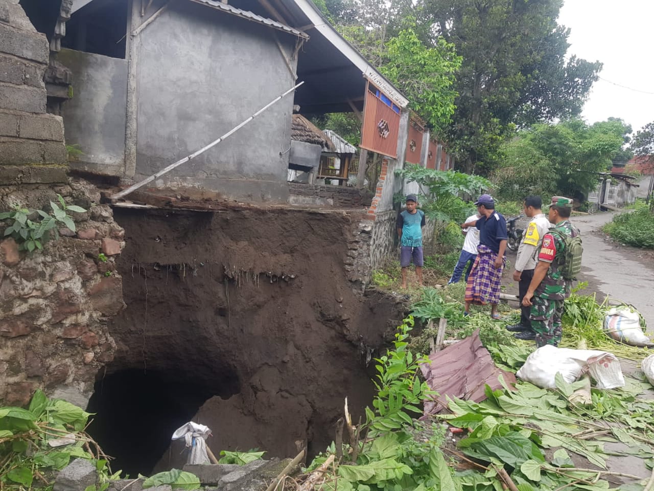 Selong, DS- Ruas jalan Paok Lombok Timur menuju jalan utama Kecamatan Suralaga amblas diguyur hujan seharian, Rabu (04/12/2024). Akibatnya, rumah milik salah seorang warga setempat nyaris roboh.