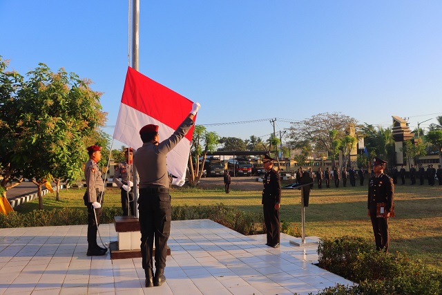 Lombok Tengah, DS- Dua Polres, masing-masing Polres Lombok Tengah dan Polres Lombok Utara melaksanakan Upacara Hari Ulang Tahun ke – 79 Proklamasi Kemerdekaan Indonesia dengan khidmat di di Lapangan Mapolres masing-masing, Sabtu (17/8).
