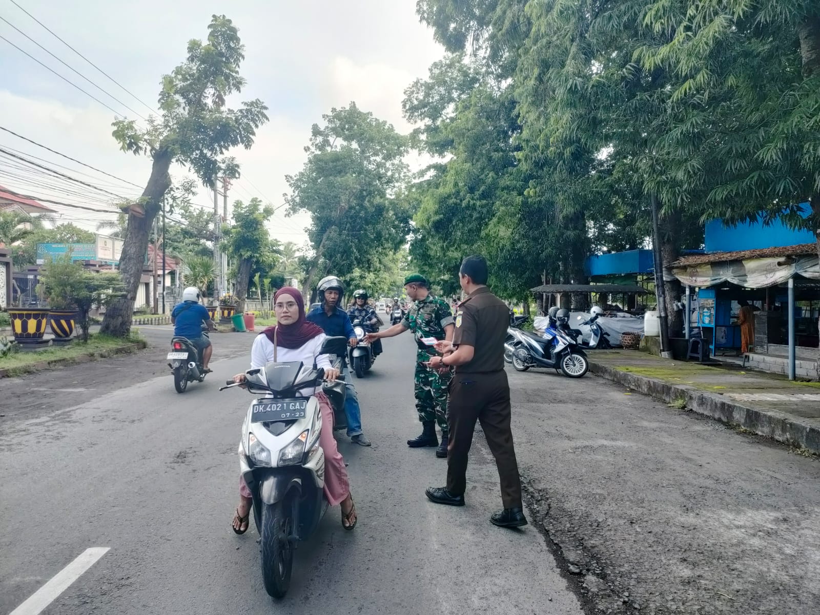 Selong, DS- Kejaksaan Negeri Lombok Timur membagikan kaos dan stiker antri korupsi kepada pengguna jalan dan pengendara yang melintas di depan Kantor Kejaksaan Negeri Lombok Timur, Selasa (09/12/2025).