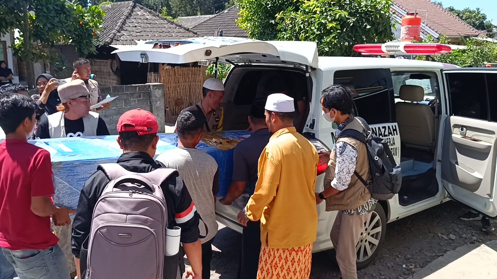 Selong, DS- Jenazah Gafur (30) tiba di kampung halamannya di Dusun Kecego, Desa Waringin, Kecamatan Suralaga Lombok Timur, NTB, Jumat (09/08/2024).