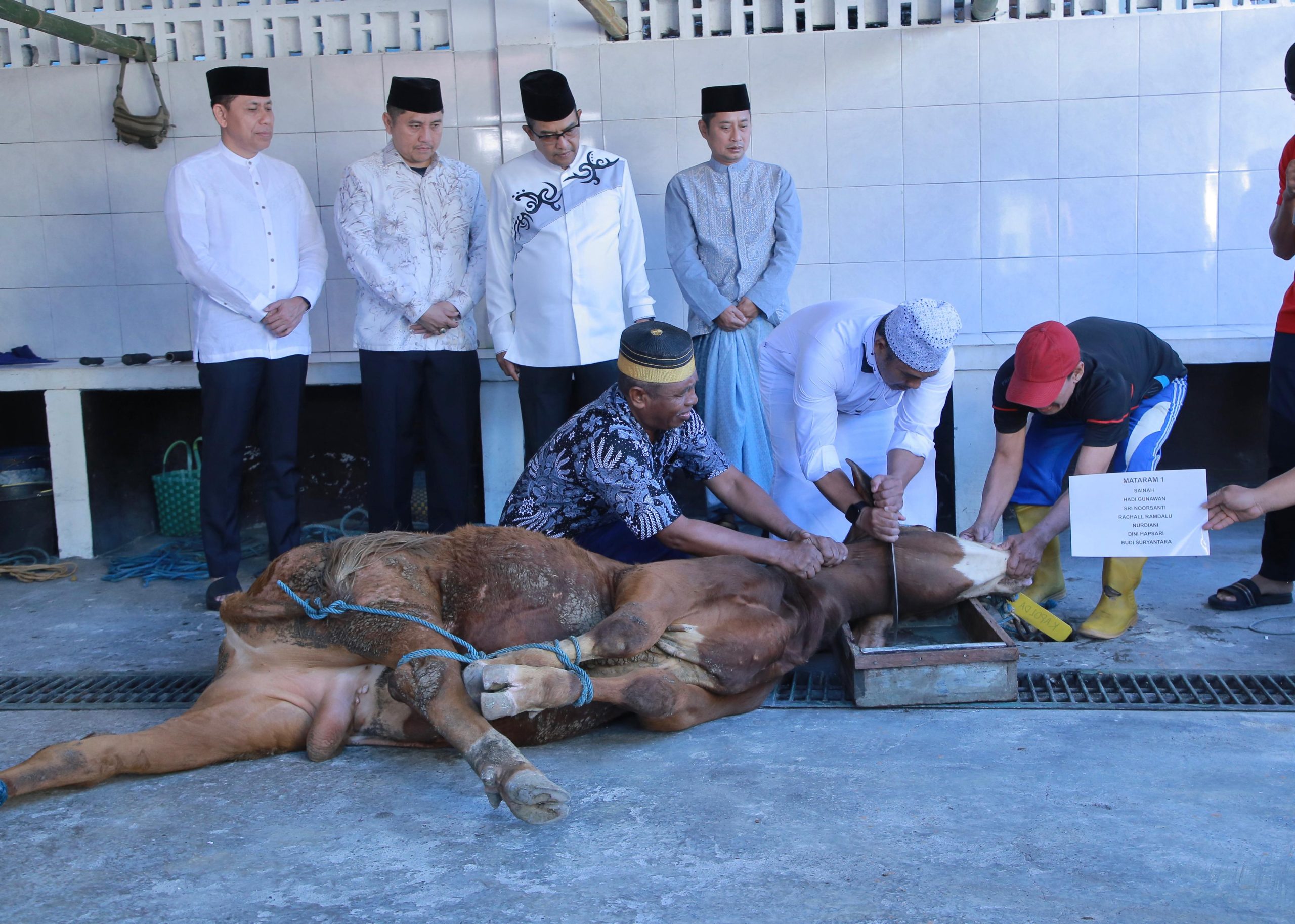 Mataram DS—Kapolda NTB Irjen Pol. Hadi Gunawan, S.H., S.I.K., secara langsung menyerahkan hewan qurban dan turut menyaksikan prosesi penyembelihan yang dilakukan dengan khidmat, Jumat (6/6).