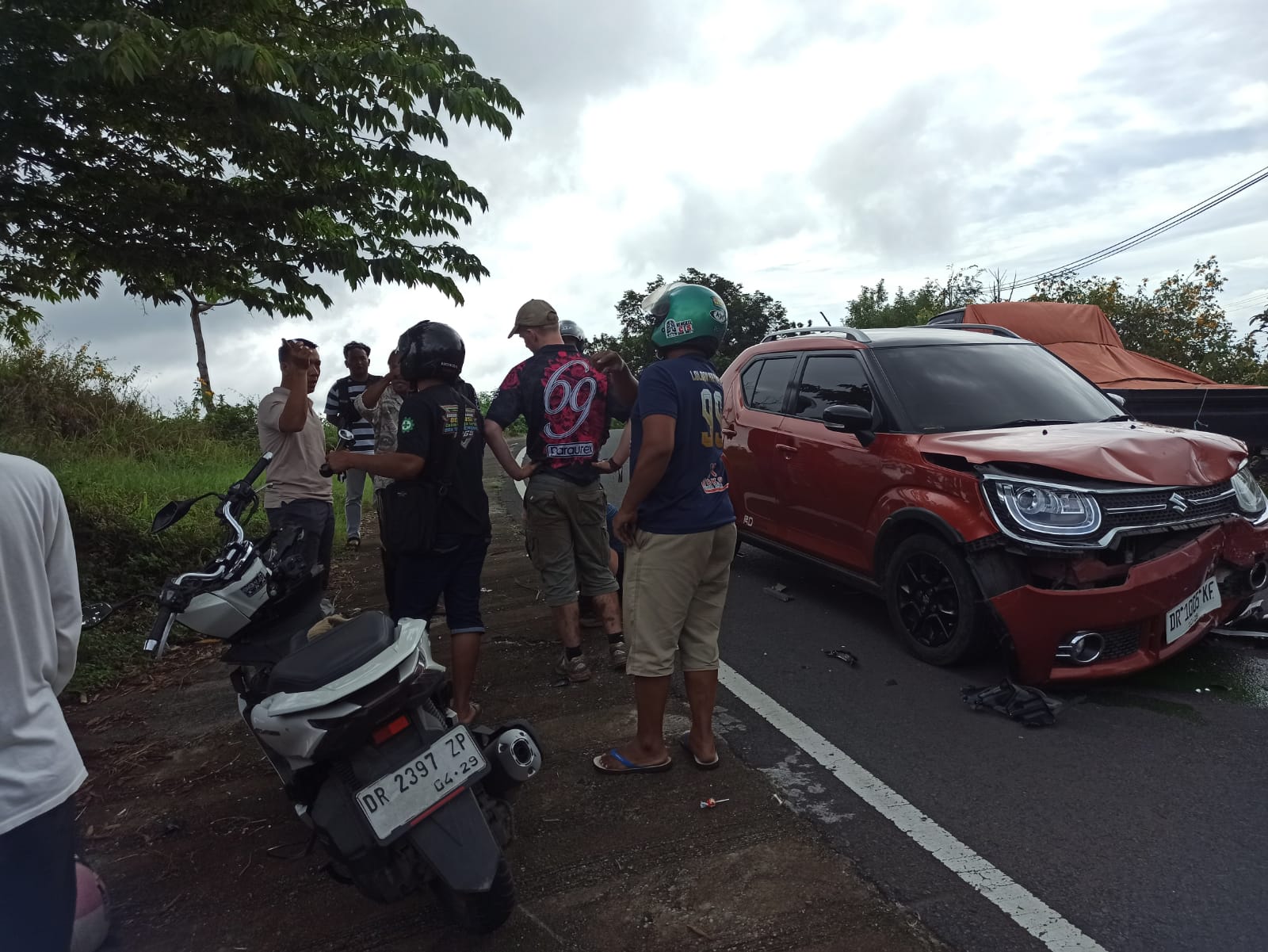 Lakalantas itu melibatkan sebuah mobil Suzuki Ignis dengan nomor polisi DR 1005 KF dan sepeda motor Honda PCX dengan nomor polisi DR 2397 ZP. Insiden mengakibatkan satu korban jiwa dan dua lainnya mengalami luka-luka.