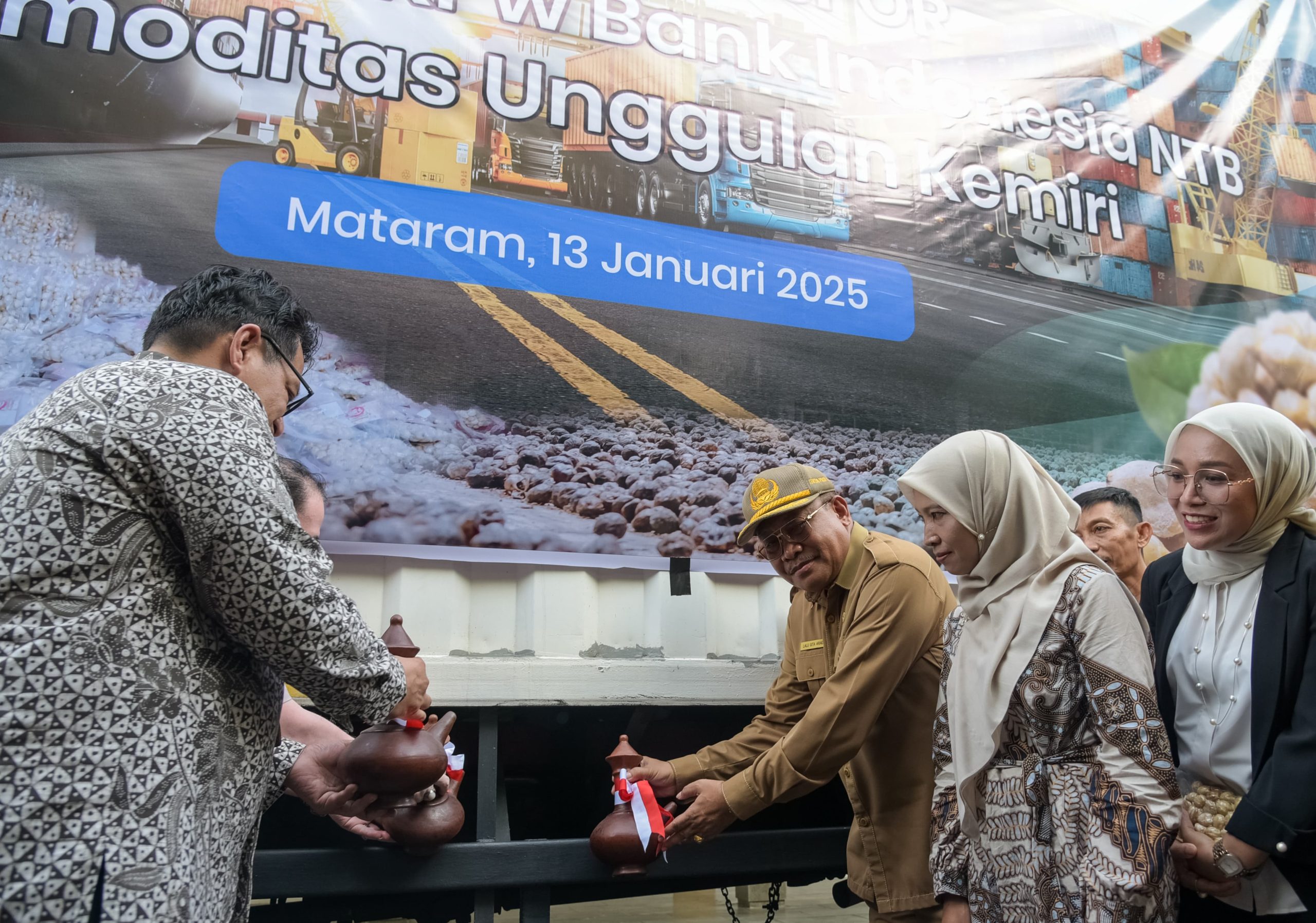 Ekspor oleh PT. Mujnah Kemiri Lombok Tengah yang merupakan Usaha Mikro Kecil dan Menengah (UMKM) binaan Bank Indonesia NTB dilepas Sekretaris Daerah, Drs HL Gita Ariadi, MSi, Kepala BI NTB Berry A Harahap, di Kantor BI NTB. Senin (13/01). Hadir pula Kepala Balai Karantina, Kadis Perdagangan, Perindustrian, DPMPTSP dan lainnya.