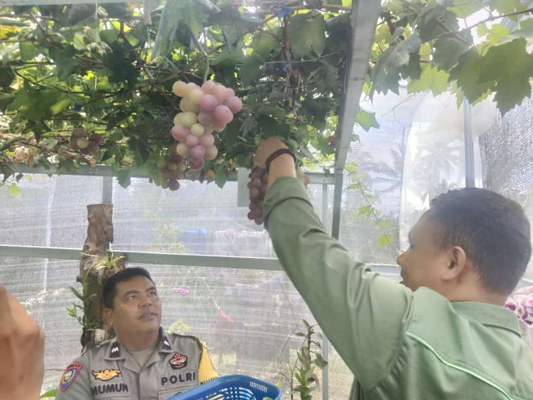 “Saya senang saja lihat anggur, karena bikin halaman rumah jadi teduh. Makanya saya belajar dari YouTube dan akhirnya bisa hidup dan berubah. Dari situlah saya cobak fokus,” terang AIPDA Muhammad Munawar saat ditemui di sela-sela kegiatannya, Jumat (30/10).
