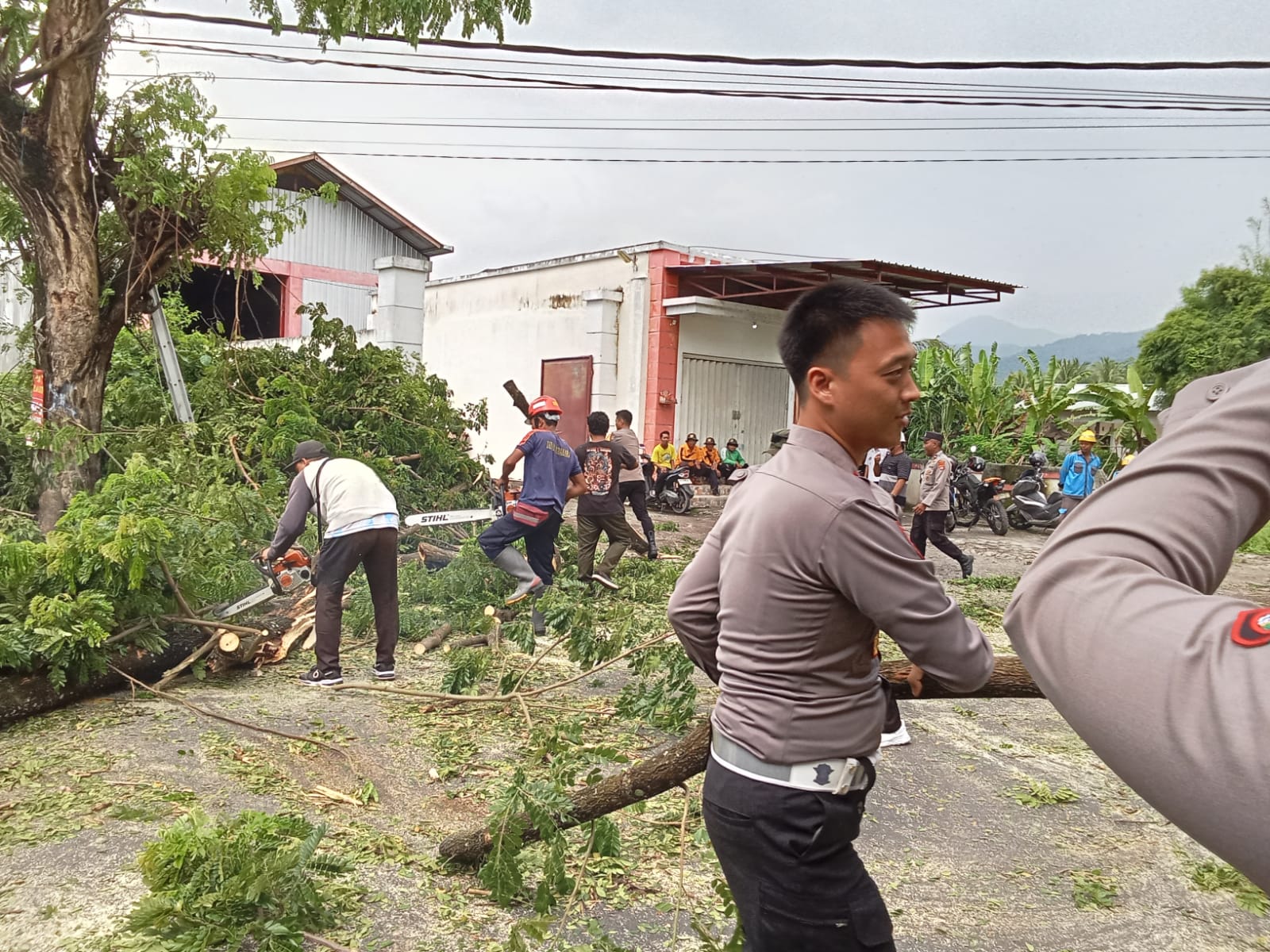 Dalam situasi ini, Damkar KLU bergerak cepat memangkas pohon tersebut untuk mencegah dampak lebih lanjut akibat curah hujan tinggi dan angin kencang yang melanda kawasan ini.