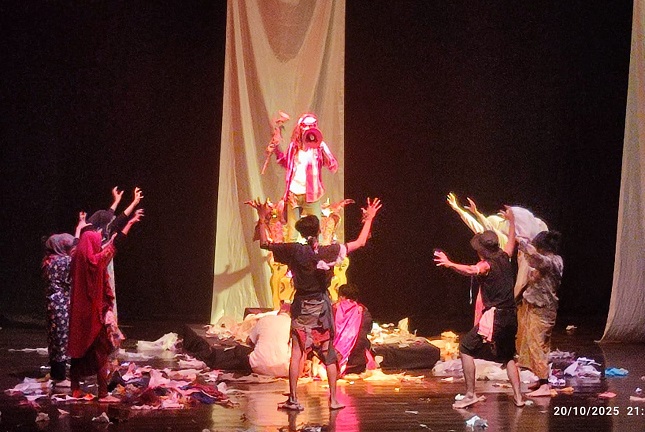 KEKUASAAN; incumbent, lawan politik, rakyat dan pewarta. Sebuah unsur padu prosesi jelang suksesi. Parade kepalsuan kekuasaan dikurasi Teater Kamar Indonesia dalam pertunjukan “Hikayat Gajah Duduk” di Taman Budaya NTB sejak Sabtu (18/10) hingga Selasa (21/10)