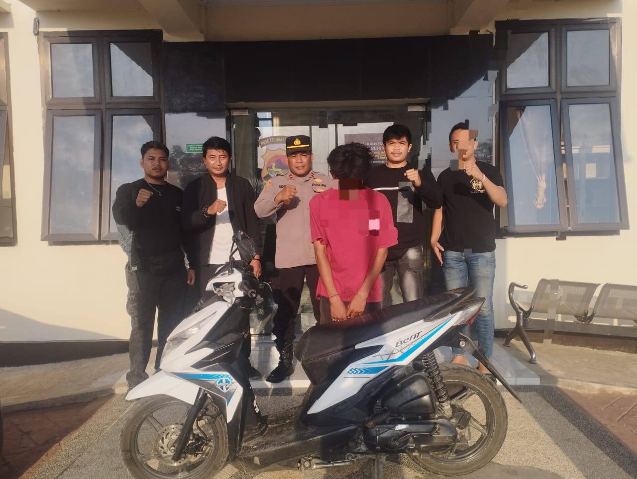 Atas laporan curanmor Kapolsek Poto Tano, Ipda Abdul Ghafir, memerintahkan Unit Reskrim Polsek Poto Tano untuk menindaklanjuti dengan penyelidikan. Dari upaya serangkaian penyelidikan diperoleh informasi bahwa terduga pelaku mengarah kepada SF, selanjutnya dilakukan pengejaran terhadapnya. Setelah satu minggu bersembunyi akhirnya Senin (7/10), SF berhasil diamankan oleh gabungan Tim Puma Sat Reskrim dan Unit Reskrim Polsek Poto Tano di tempat persembunyiannya di Ds. Kanar Kec.lab Badas. Diamankan pula barang bukti sepeda motor Honda Beat warna putih lis biru.