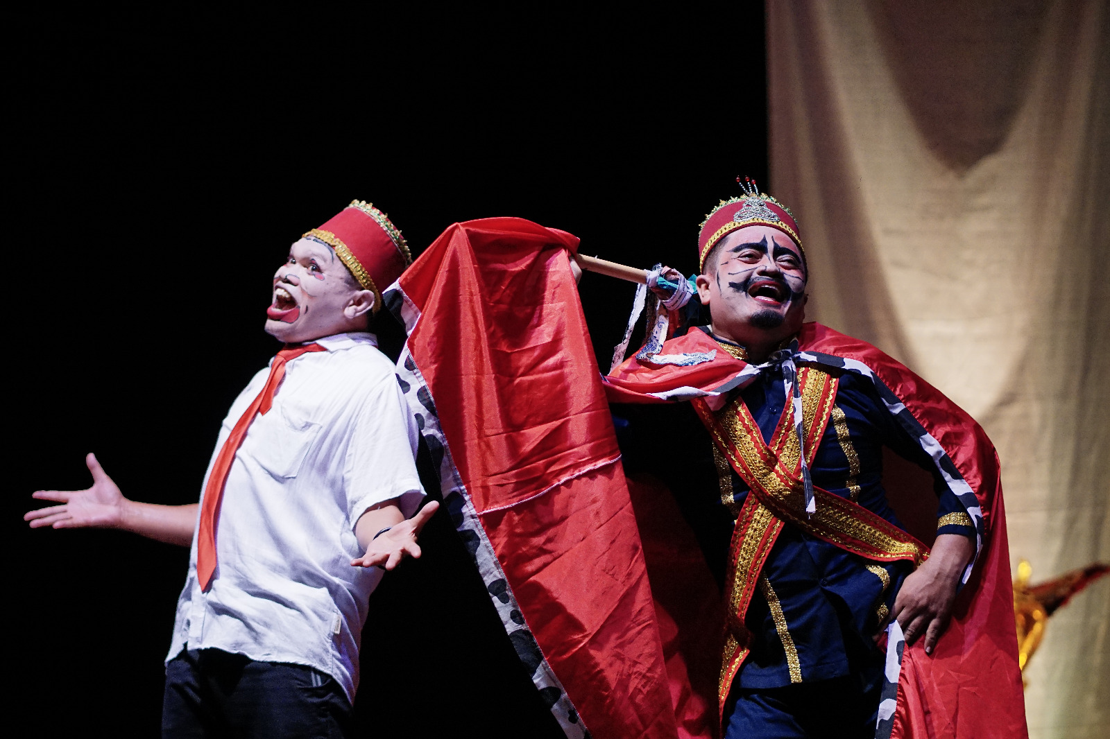 Disutradarai oleh Syahirul Alim dan dimainkan oleh tujuh aktor utama yang sama-sama memiliki kekuatan tersendiri, Syahirul Alim sebagai Kalangkabo (raja/pejabat), Murachiem sebagai Karta (ajudan Kalangkabo), Kelly Jasmine Suntawe sebagai Eksisa (istri pejabat/Kalangkabo), Sumarta sebagai ajudan Eksisa, Vino Sentanu dan Zakiyudin, keduanya sebagai juru kabar serta Nash Jauna sebagai Teriak Mardika (mewakili rakyat) juga 8 aktor pendukung lainnya yakni mahasiswa dari sastra pertunjukan Bastrindo FKIP Unram.