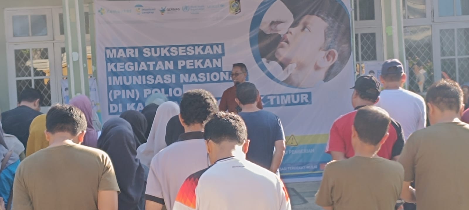 “Mari kita gas bersama sama, sukseskan PIN Polio”, ajaknya di depan para ASN dan petugas kesehatan.