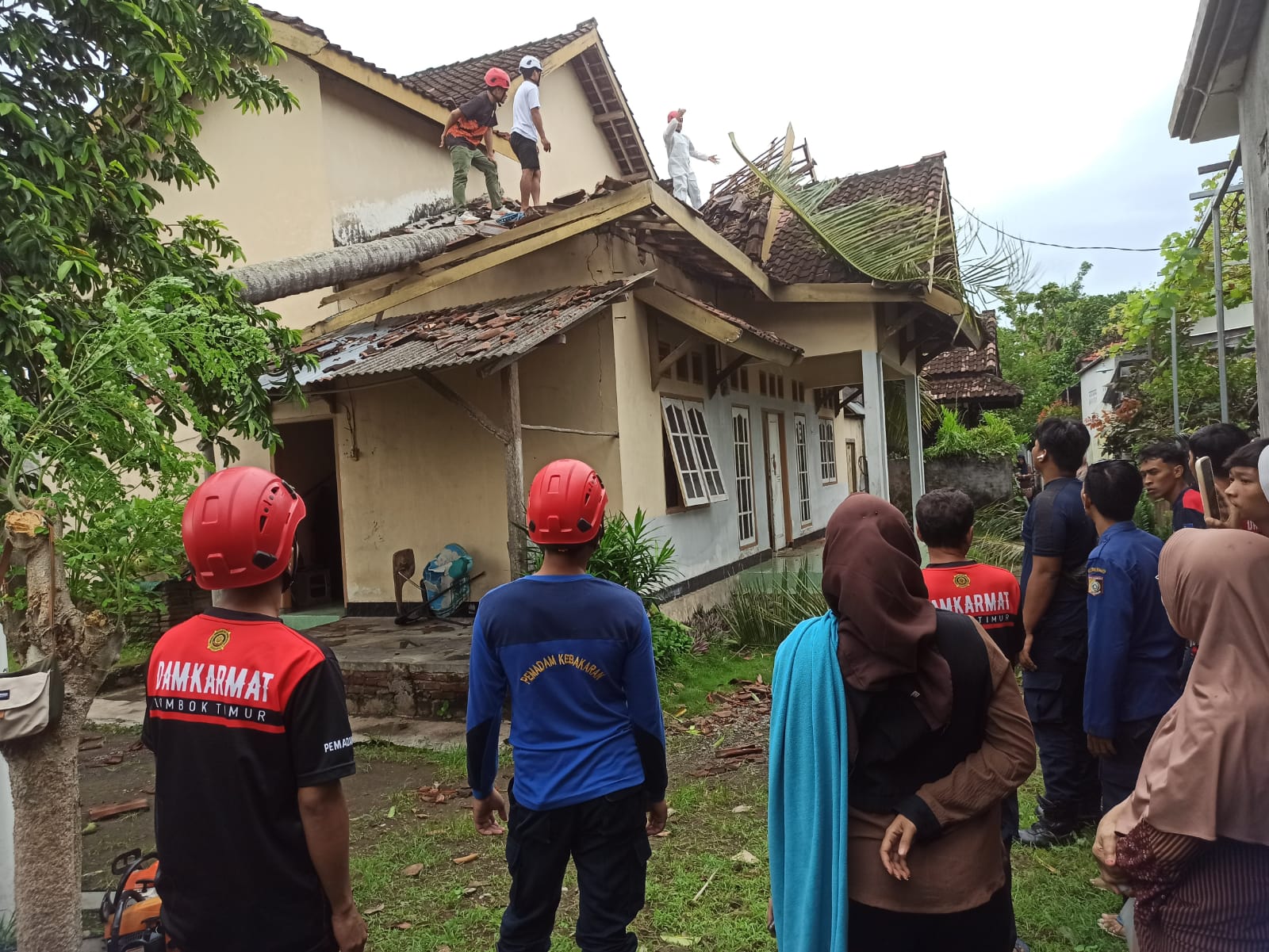 Warga sekitar dan tim dari Unit Reaksi Cepat (URC) SAR Lombok Timur serta Dinas Pemadam Kebakaran dan Penyelamatan (Damkarmat) Lombok Timur segera memberikan bantuan. Mereka membersihkan puing-puing dan mengevakuasi pohon yang tumbang.