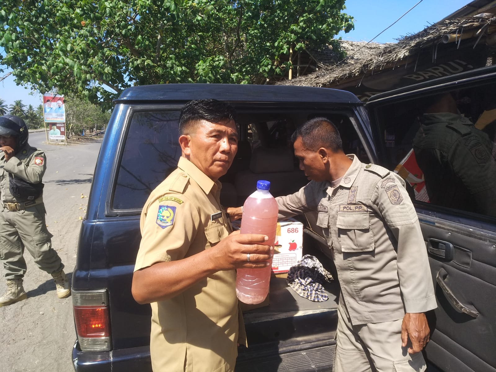 Selong, DS- Anggota Pol.PP Kecamatan Labuhan Haji berhasil mengamankan secara OTT pelaku pemasok minuman keras ke kawasan pantai Labuhan Haji, Senin siang (4|11).