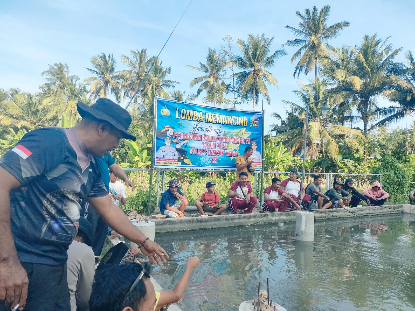 Pihak jajaran Polres Lombok Timur menggelar lomba mancing dalam rangka memeriahkan peringatan HUT Bhayangkara ke-79, Minggu (22/6).