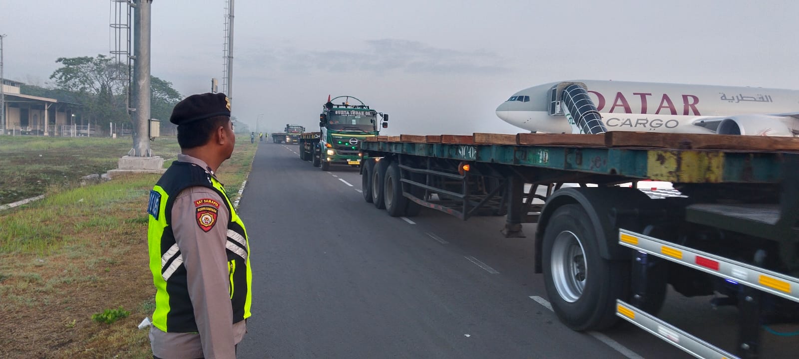 Fajri mengatakan sebanyak 222 pieces logistik dibawa pesawat cargo Qatar Airways dengan rute : Doh-Lop-Hkg, kemudian langsung dilakukan proses unloading (bongkar muat) di bandara.