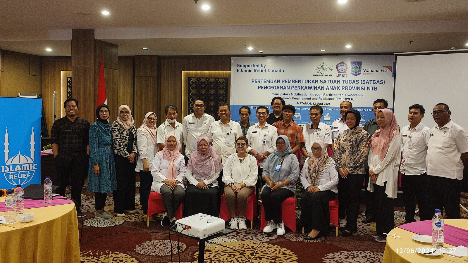 Mataram, DS-Pertemuan pembentukan Satgas pencegahan perkawinan anak Provinsi NTB berlangsung di Fave Hotel Mataram, Rabu (12/6), diinisiasi Islamic Relief. Hadir sejumlah unsur pemerintah antara lain DP3AP2KB, Diskominfotik, Bappeda, Biro Hukum, Dikbud, Kemenag, dan sejumlah NGO seperti Islamic Relief, LPA. NTB dan Lakpesdam PW NU NTB.