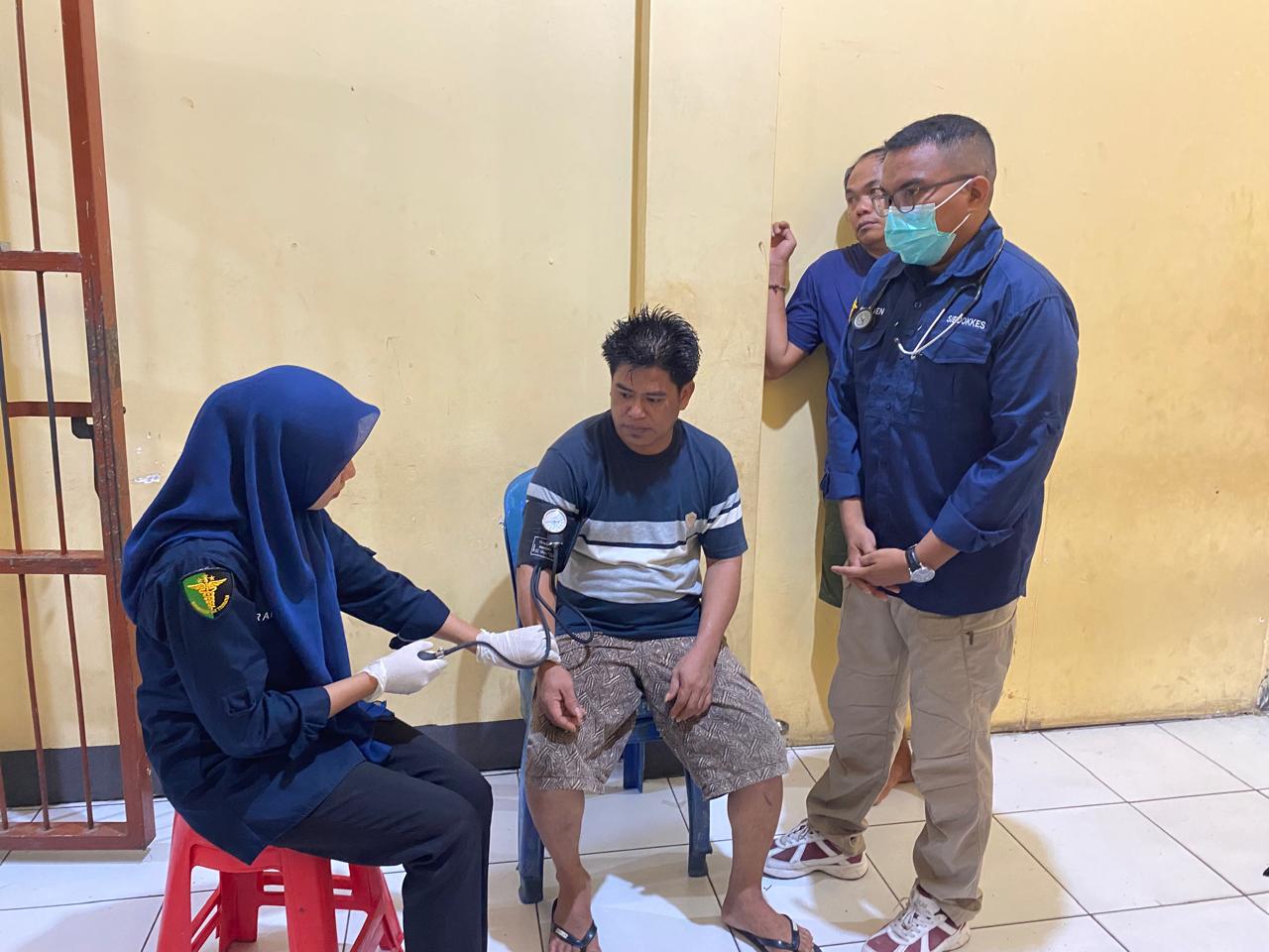 Pemeriksaan kesehatan meliputi pengecekan tekanan darah, suhu tubuh, serta konsultasi kesehatan. Selain itu, pemberian obat dan arahan atau nasihat kepada para tahanan juga dilakukan oleh tim kesehatan. Hal ini untuk memastikan setiap tahanan mendapatkan perhatian medis yang diperlukan.