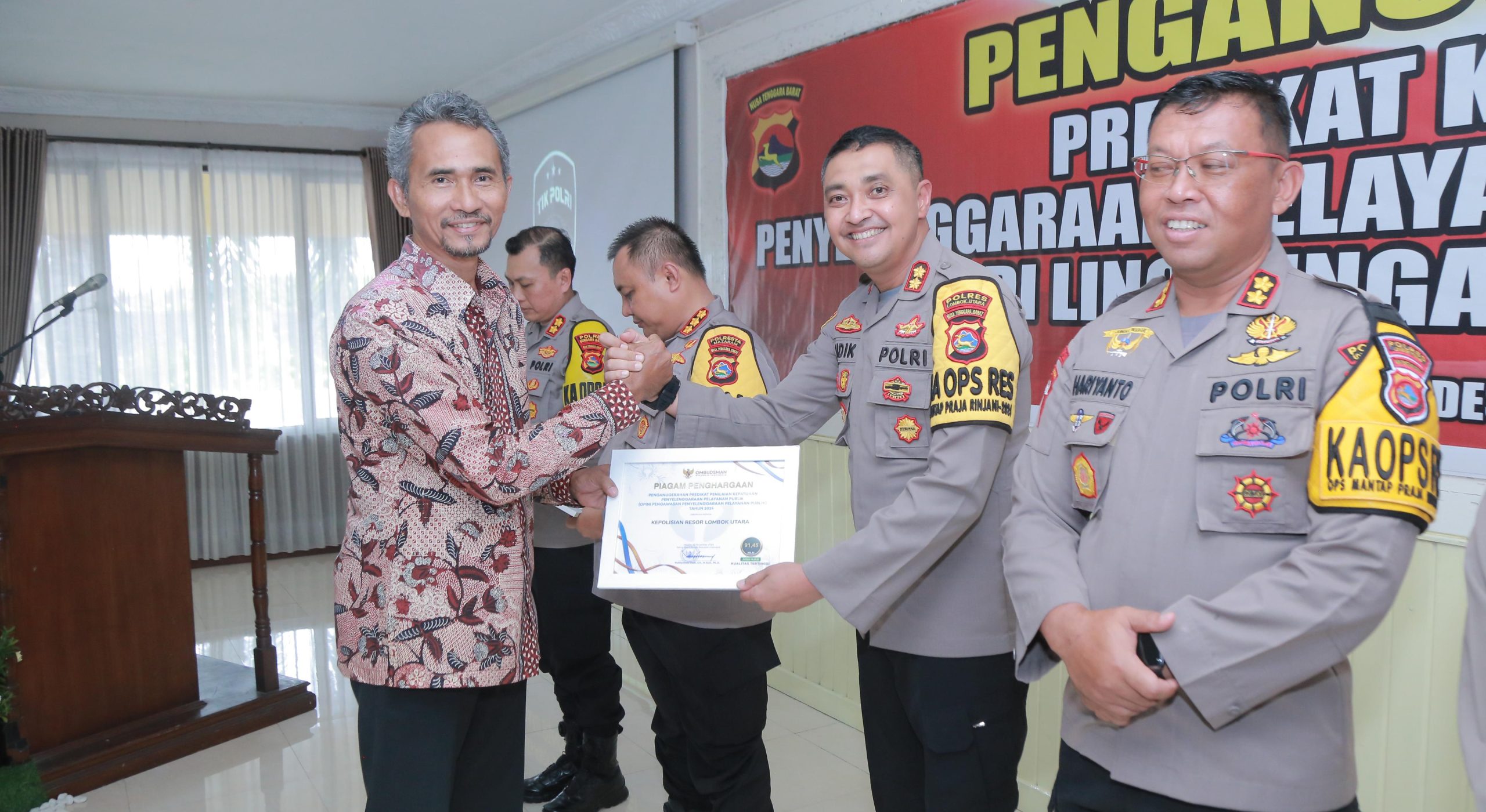 Lombok Utara, DS- Kapolres Lombok Utara, AKBP Didik Putra Kuncoro, S.I.K,M.Si. menerima penghargaan dari Ombudsman…
