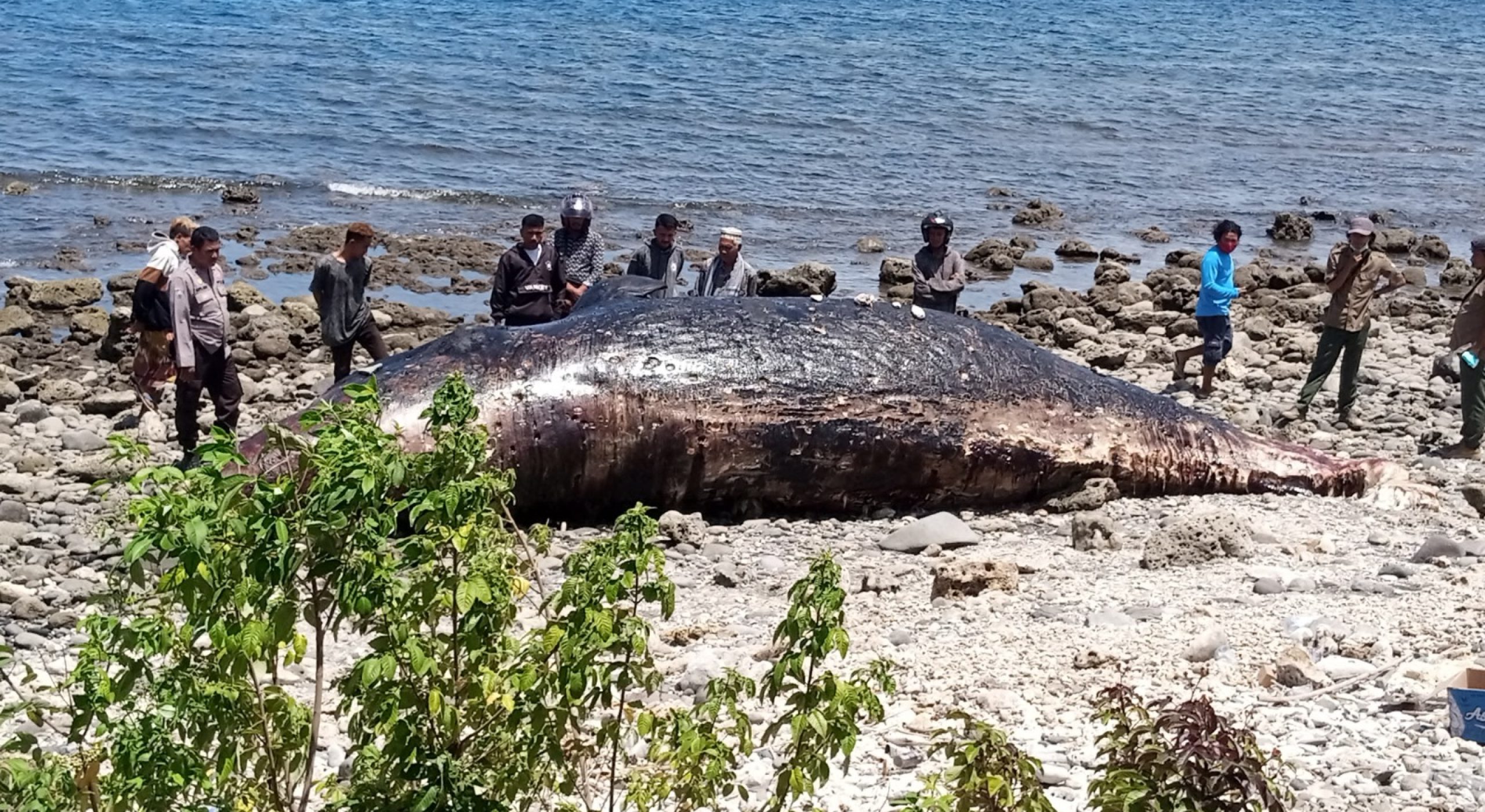 Paus Sperma Terdampar di Pantai Nangawera, Polisi Lakukan Evakuasi