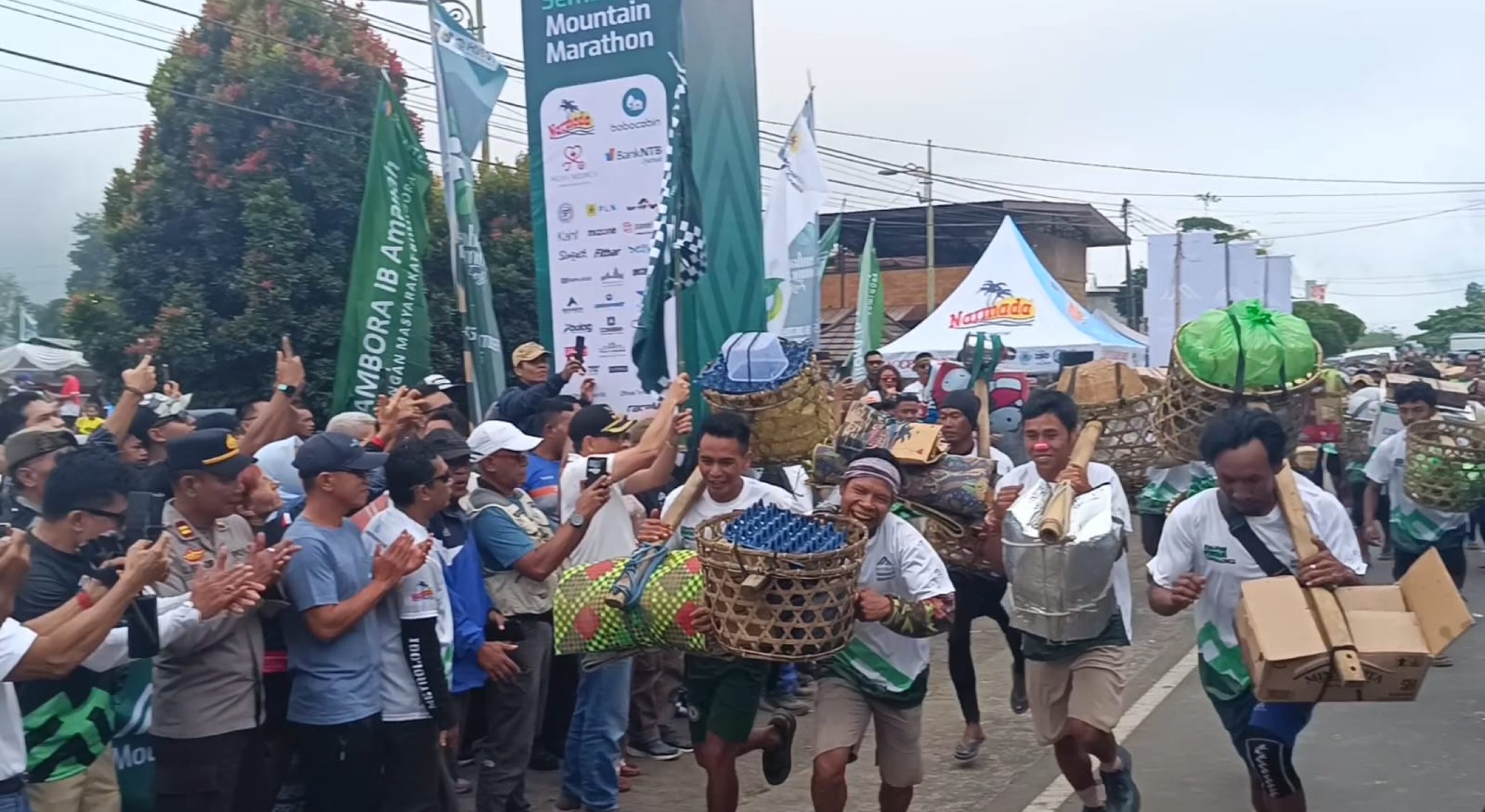 Selong, DS- Puluhan porter Rinjani mengikuti balap lari sejauh 7 kilometer, menjajal lereng Rinjani dan…