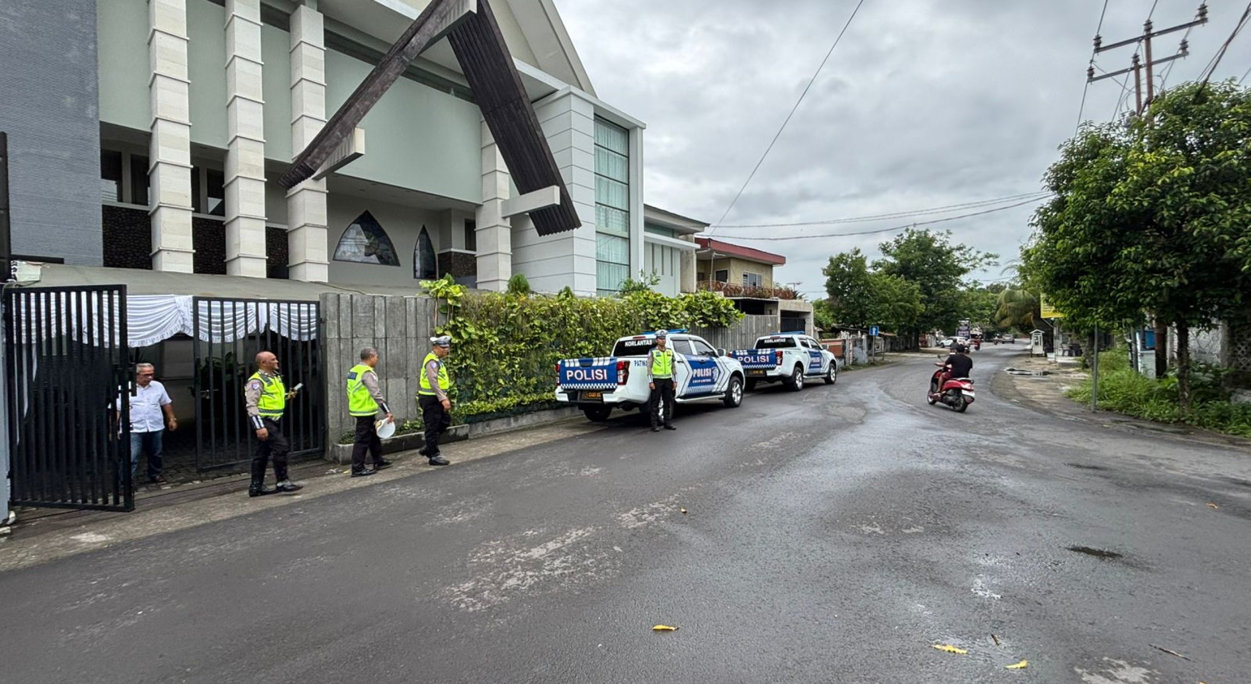 Satgas Kamseltibcar Lantas Ops Lilin Rinjani 2025 Amankan Arus Lalu Lintas di Depan Gereja