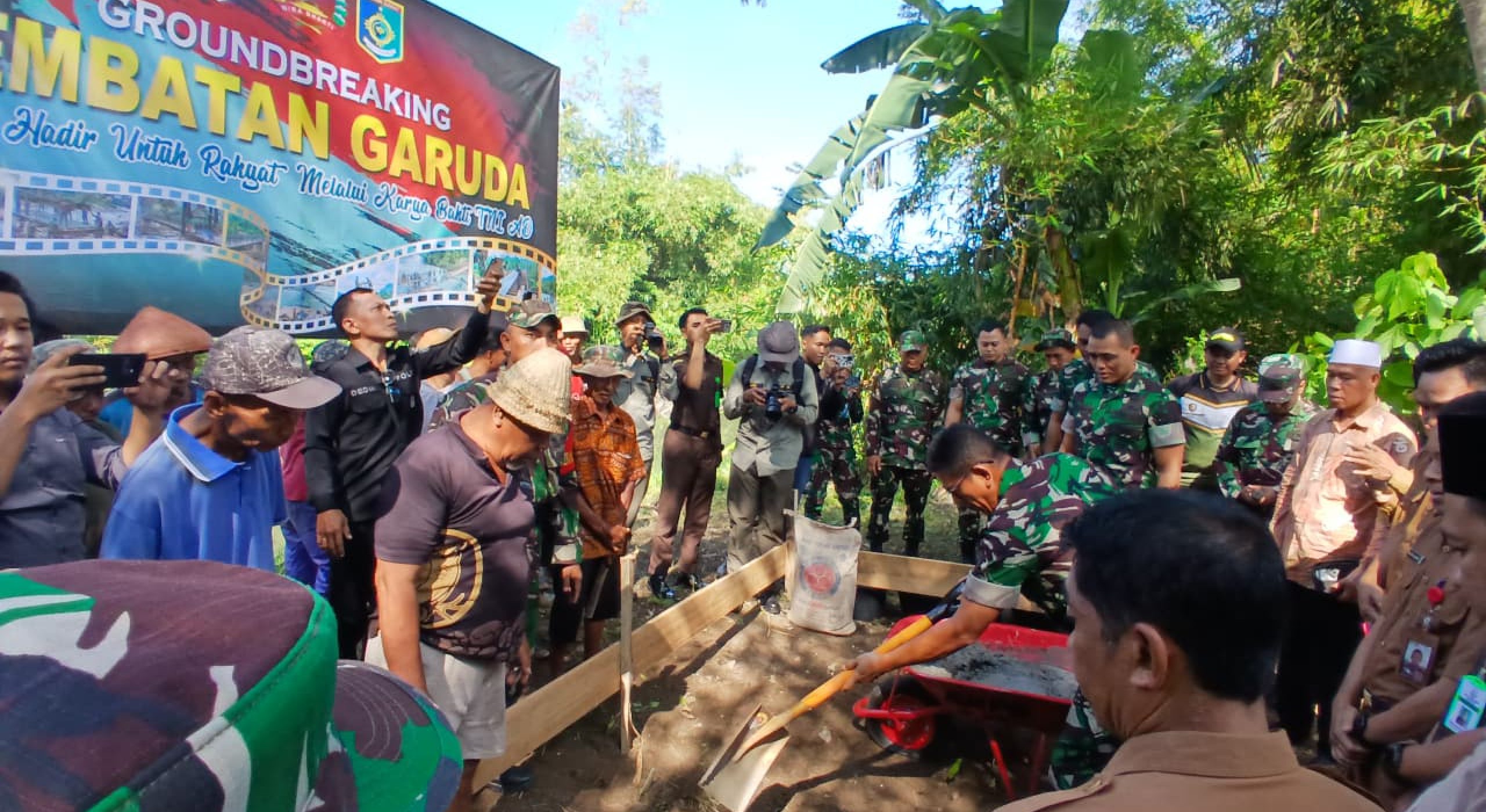 TNI-AD dan Rakyat Bangun Jembatan Garuda di Lombok Barat